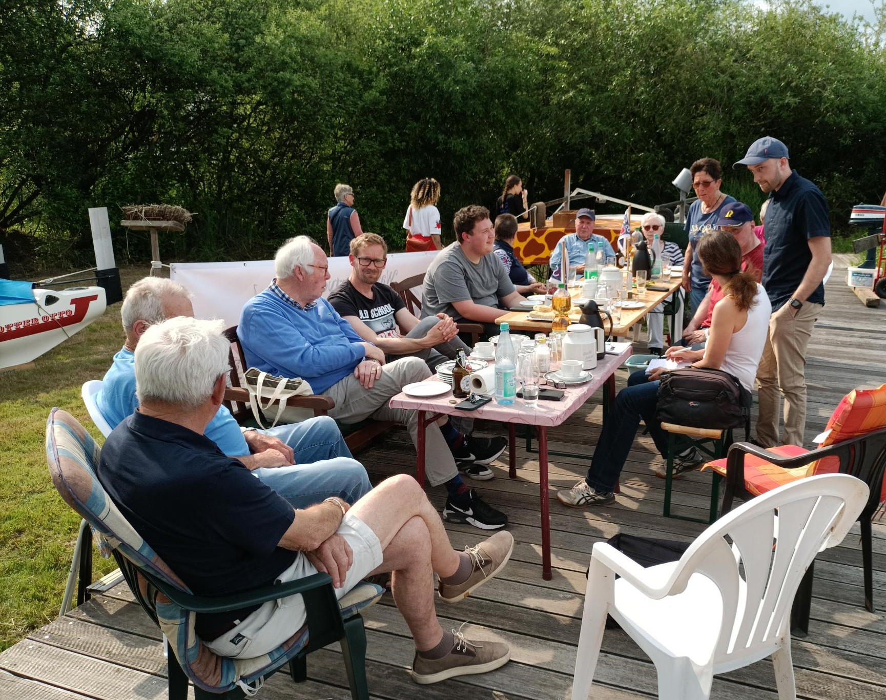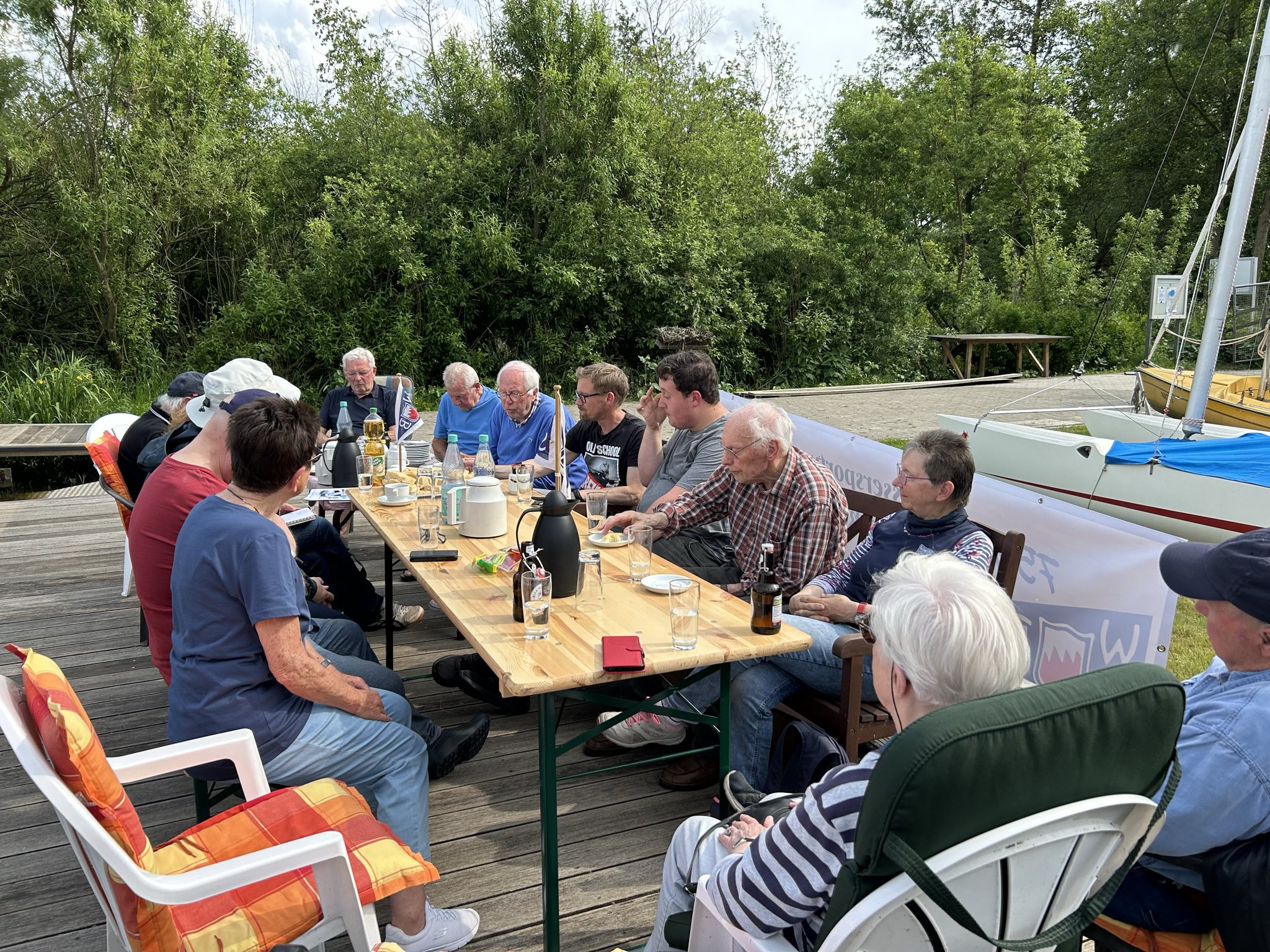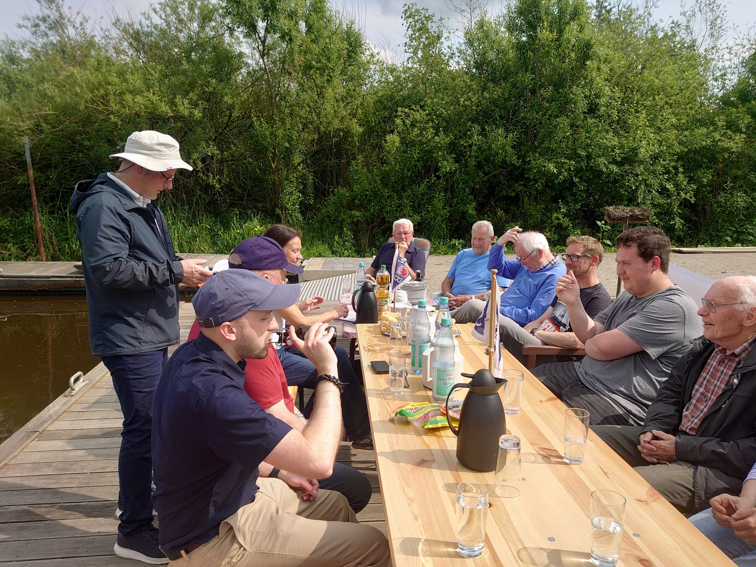 Anwesende: Ernst Kloss (Kanu), Günter Ropers (Kanu), Heino Brockhage (ehem. Vorsitzender, Segeln), Jens Ropers (Kajak), Marc Danker (Bootshauswart, Kanu), Ulf Mügge (ehem. Vorsitzender, Kanu), Andrea Brogmus (Ruderwartin), Ernst Garbe (ehem. 2. Vorsitzender, Segeln), Irene Dietrich (ehem. Kassenwartin, Kanu/Segeln), Hanna Hagena (Kanu/Segeln), Fabian Mangels (2. Vorsitzender, Kanu/Drachen), Karlheinz Klug (Kassenwart, Segeln), Gabriele Scheiter (Presse), Arne Peterson (Hafenwart, Segeln)